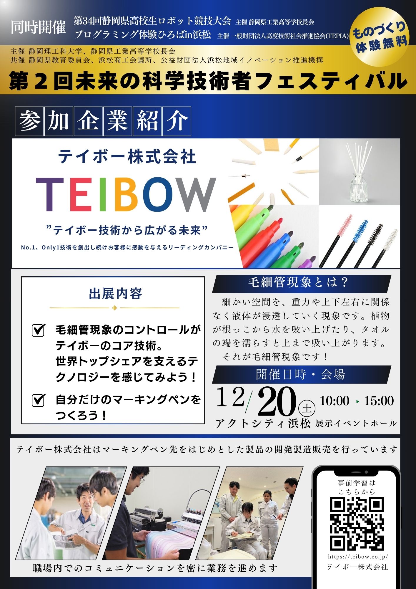 2025年12月20日(土)、アクトシティ浜松で開催される産学官連携イベント「未来の科学技術者フェスティバル」に出展企業としてブース参加します。